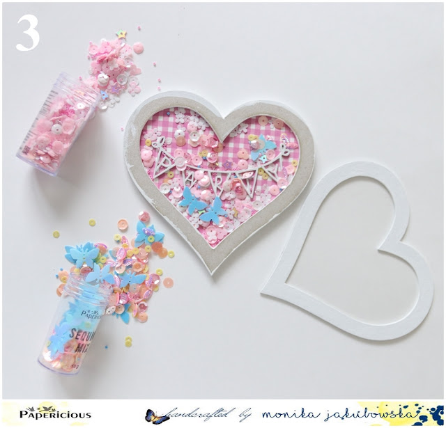 Hello, Monika here.I just love gorgeous 3D chiboards and sequins mixes from Papericious.Today I would like to show you how to make a heart shaker box.