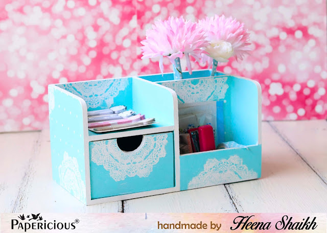 Heena here from bloomingpaperbuds.com, Today I have two amazing projects to share featuring the new launches from Papericious. Check out the April release if you haven't already, Papericious has launched some amazing mdf desk organizers, two new beautiful paper packs and the most awaited white chippies.